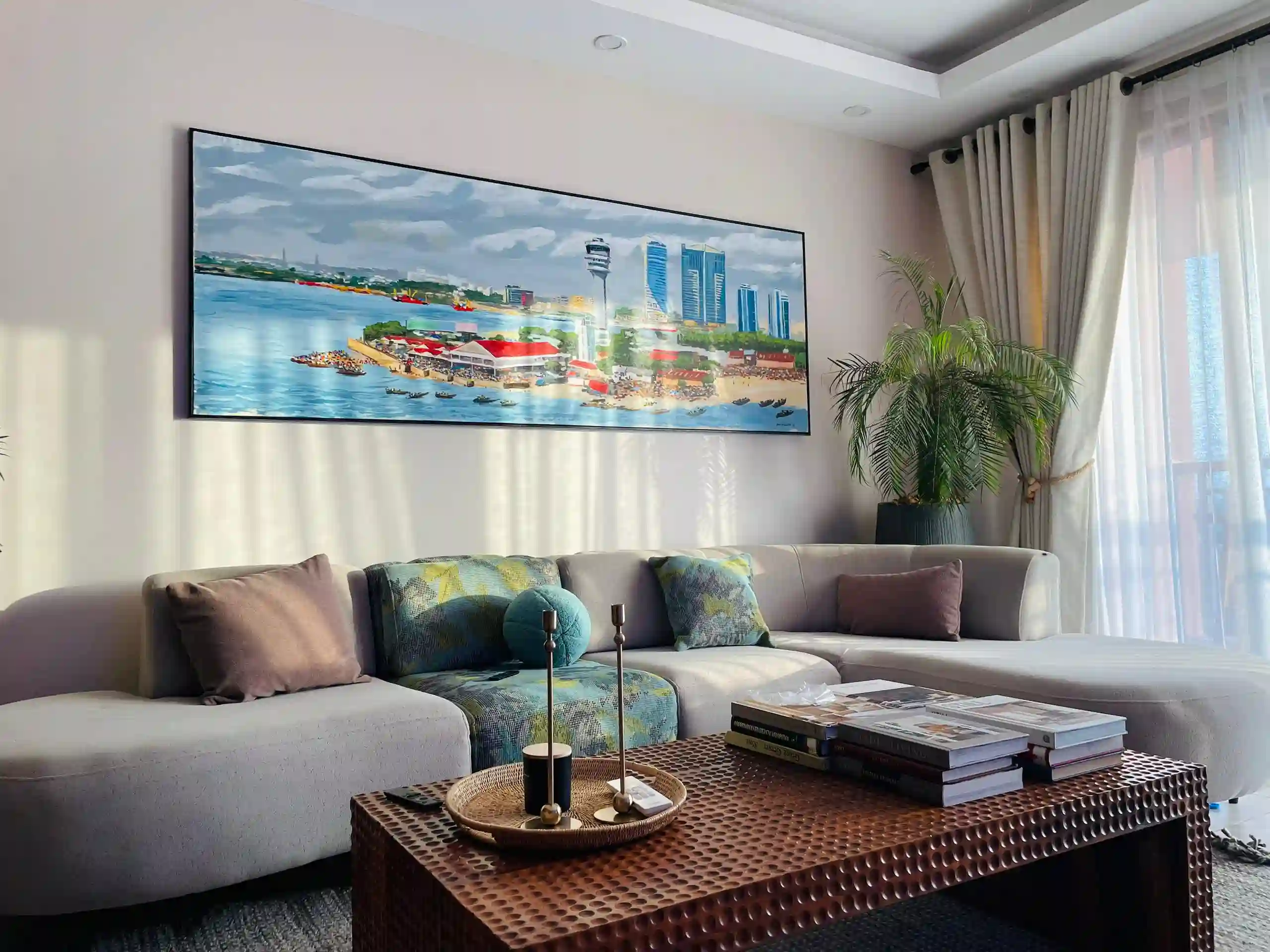 Original artwork ships worldwide from Dar es Salaam, securely and carefully rolled and packed in a protective tube. Local collectors are welcome to pick up their pieces in person or delivered through local means.